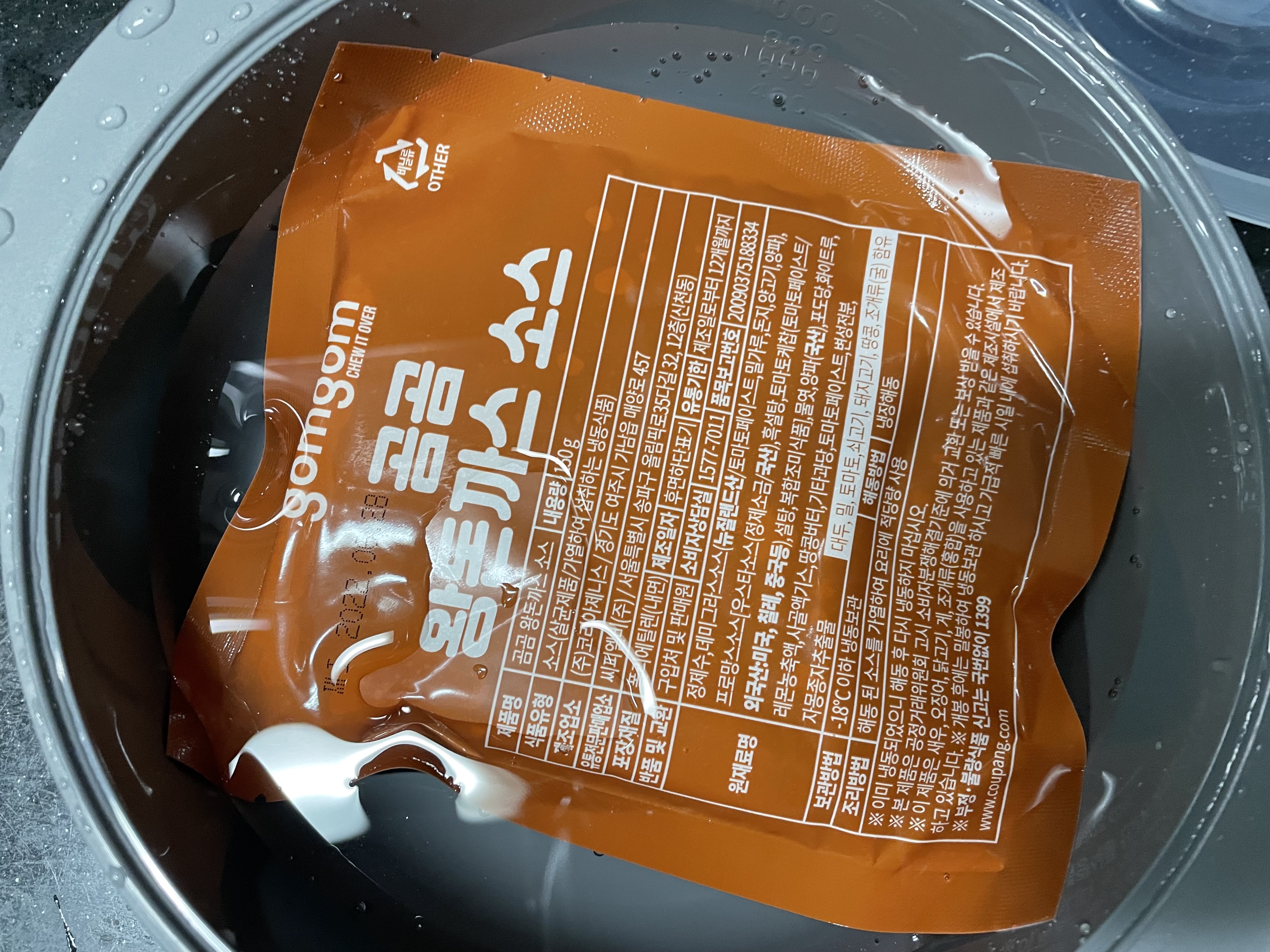 우선 소스도 냉동되어있기 때문에 찬물로 해동 후에 전자레인지에 돌려주면 됩니다!!