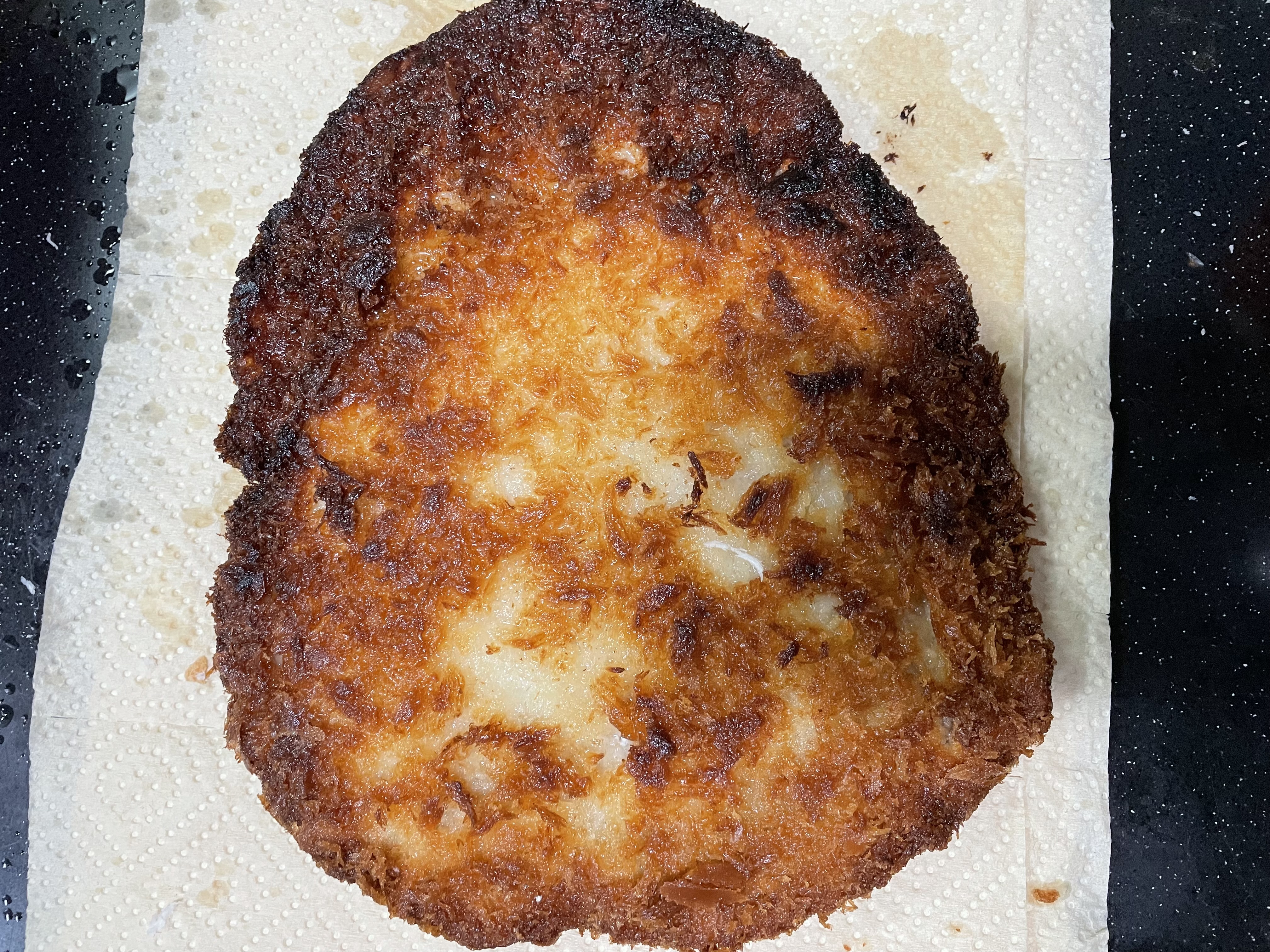 이제 키친타월을 깔고 난 후 돈가스 기름을 살짝 빼주세요!!
