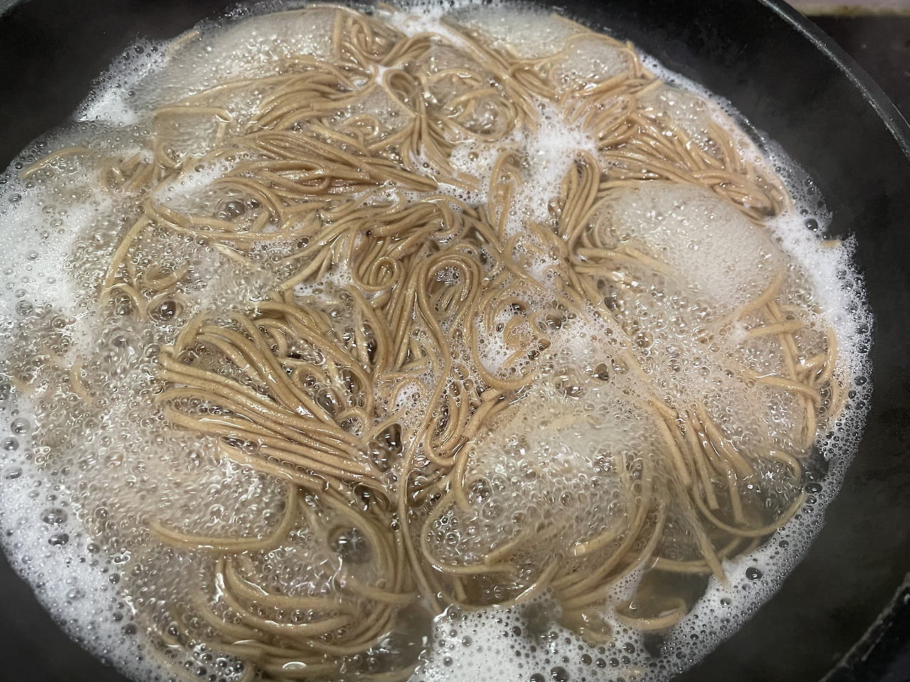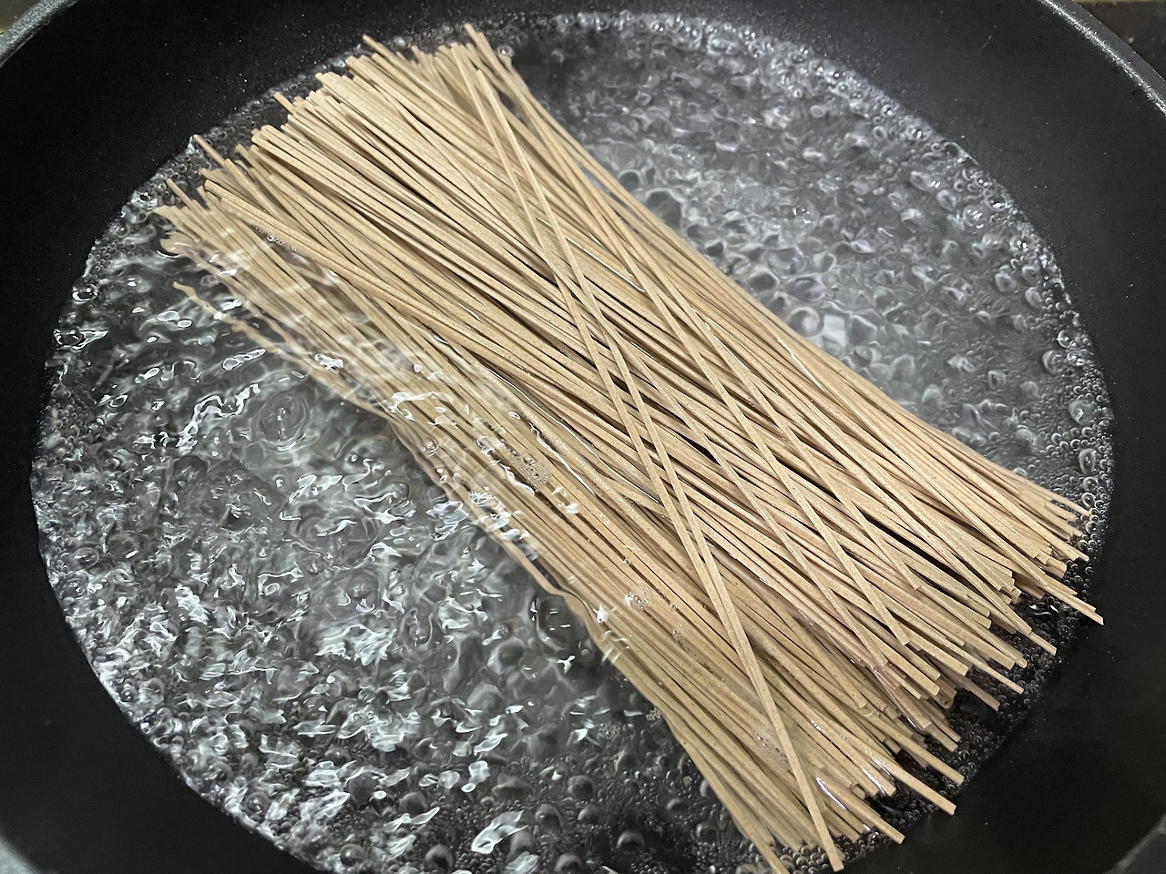 물이 끓어오르면 메밀국수 면을 넣어 주세요!